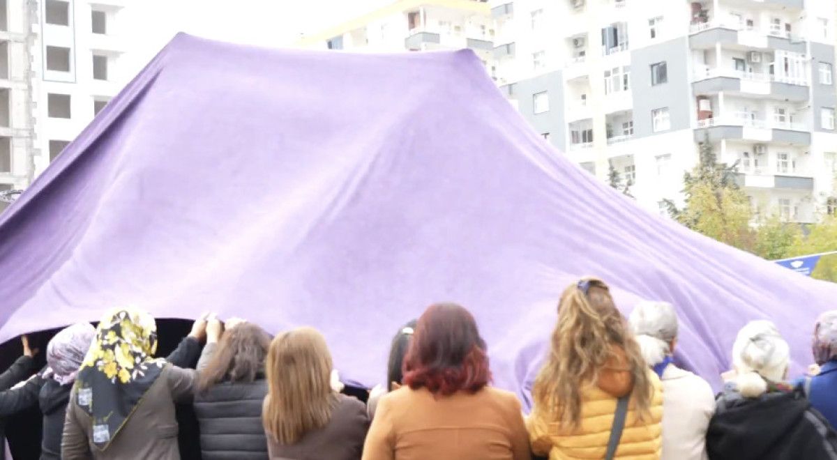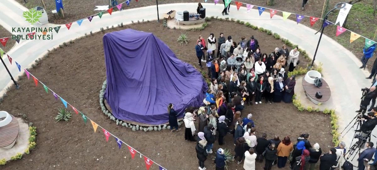 “Kadın” heykelinin açılışı öncesi de mor bir örtü ile kapatıldığı ve kadınların hep birlikte heykeli açtığı görüldü.