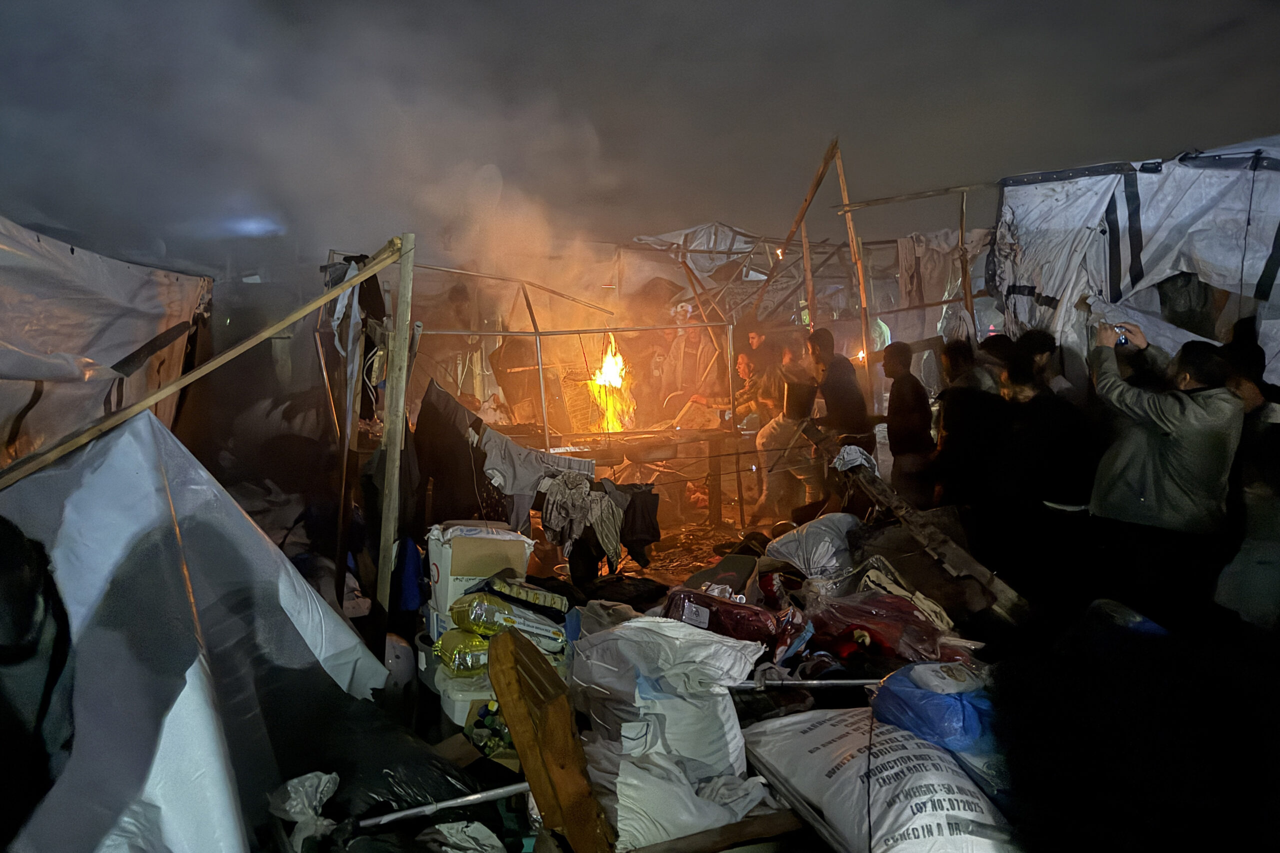 İsrail saldırısı nedeniyle kamptaki diğer çadırlarda da yangın çıktı.