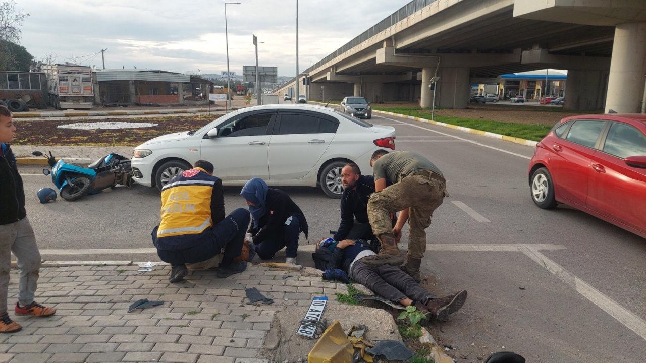 Kazada, motosiklet yaklaşık 5 metre sürüklenirken, sürücüsü M.Y. ile arkasında yolcu konumundaki A.Y. ise yola savrularak yaralandı. Çevredekilerin ihbarıyla kaza yerine polis ve sağlık ekipleri sevk edildi.